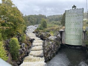 Zwischendurch halten wir in Gullspång an einer Lachstreppe. Ja genau.
