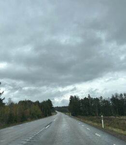Doch, erstens wird der Himmel wieder dunkler und zweitens müssen wir ja weiter, wir haben ja noch ein Stück Weg vor uns bis nach Falun. Die Landschaft wird langsam hügeliger, die Straßen irgendwie noch einsamer. Aber immer nich kein Elch zu sehen 😉