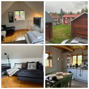 Irgendwann auf so einer Waldstraße erwischt uns ein Wolkenbruch, 10 min später scheint wieder die Sonne. Und so erreichen wir dann gegen 16 Uhr Falun. Noch schnell in einen Coop, was zum Frühstück kaufen und dann weiter nach Bergsgåden, wo unser Ferien-Tinyhaus steht.