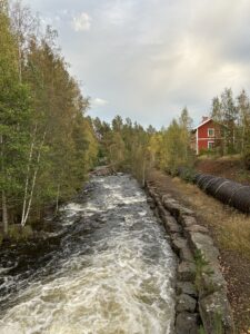 Während des Spätherbstes, im Oktober und November, wandert der Lachs vom See Vänern entlang dem Fluss Gullspångsälven. Dann kann man die Fische im Wasser sehen. Wir sind etwas zu früh hier, was aber nichts macht, denn sehr anschaulich ist es ja trotzdem.